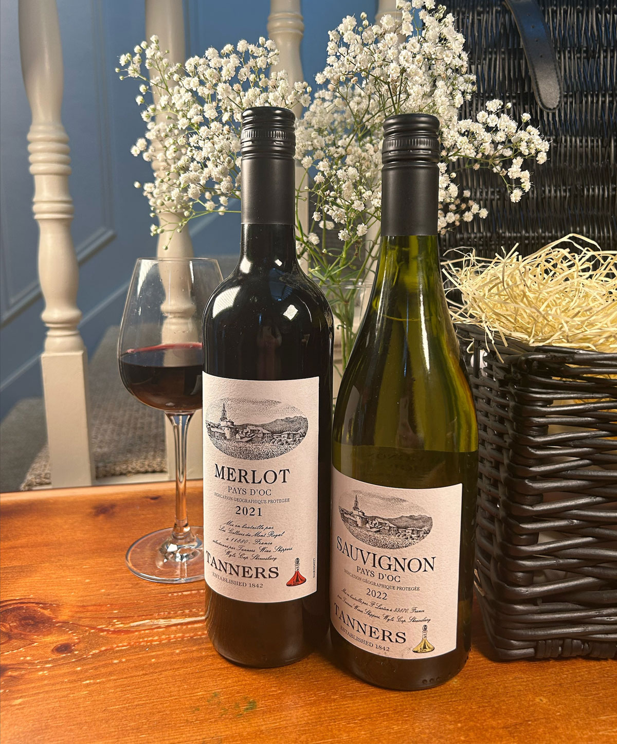 200g Snowdonia Green Thunder cheese, 200g Snowdonia Black bomber cheese, 550g Drivers mini onions, 115g Peters yard sourdough sea salt flatbread, 200g Peters yard sourdough artisan crispbread, Buiteman's sun dried tomato biscuits, 200ml Charlie & Ivy's smoked garlic & Black pepper bread dipper, 200g Farmhouse lemon biscuits, 340g Apley seville marmalade, 350g Apley strawberry preserve, 311g Apley lemon curd, 311g Apley Shropshire pickle, 320g Butlers chocolate box 75cl Tanners Sauvignon Pays D'oc and 75cl Tanners Merlot Pay's D'oc.